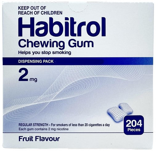 Habitrol 2mg Fruit Flavoured gum is intended to aid smoking cessation by reducing nicotine cravings and withdrawal symptoms. The nicotine is absorb...