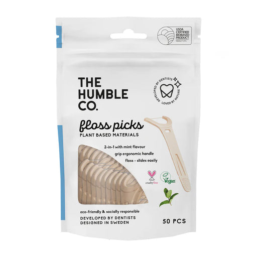 floss picks made entirely from plastics?Old school. Made with cornstarch as the main ingredient, our plant-based floss picks make flossing a piec...