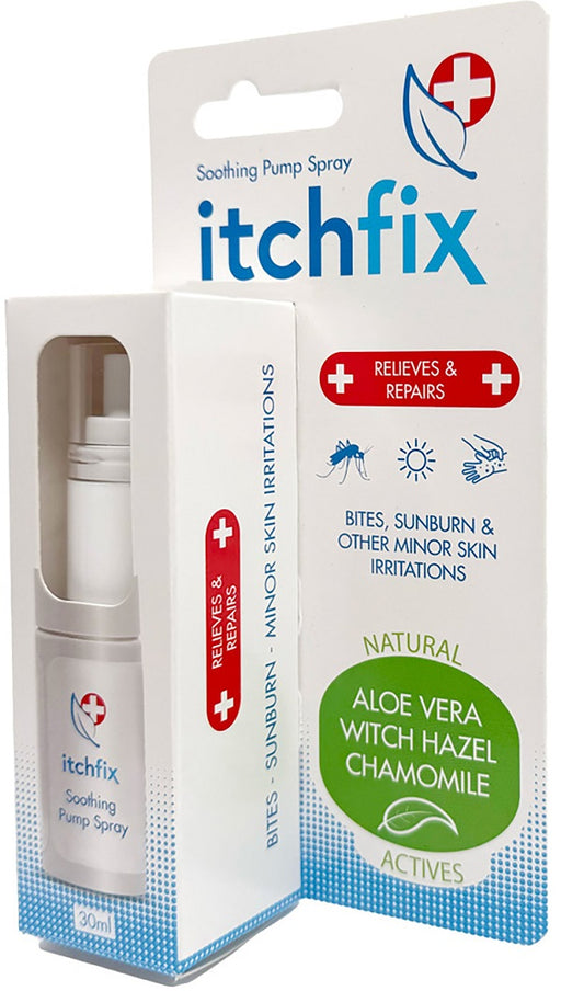 Description Itchfix Soothing Pump Spray helps to soothe and cool minor skin irritations associated with outdoor activities and exposure to the ...