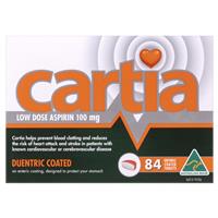 Cartia® low dose aspirin for heart protection that's gentle* on the stomach. *Cartia low dose aspirin has a Duentric® coating which is designed to ...